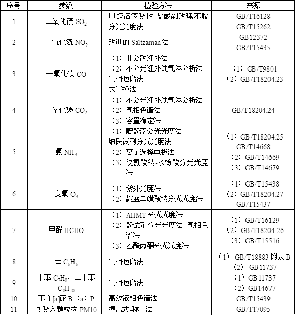 室內(nèi)空氣中各種參數(shù)的檢驗(yàn)方法